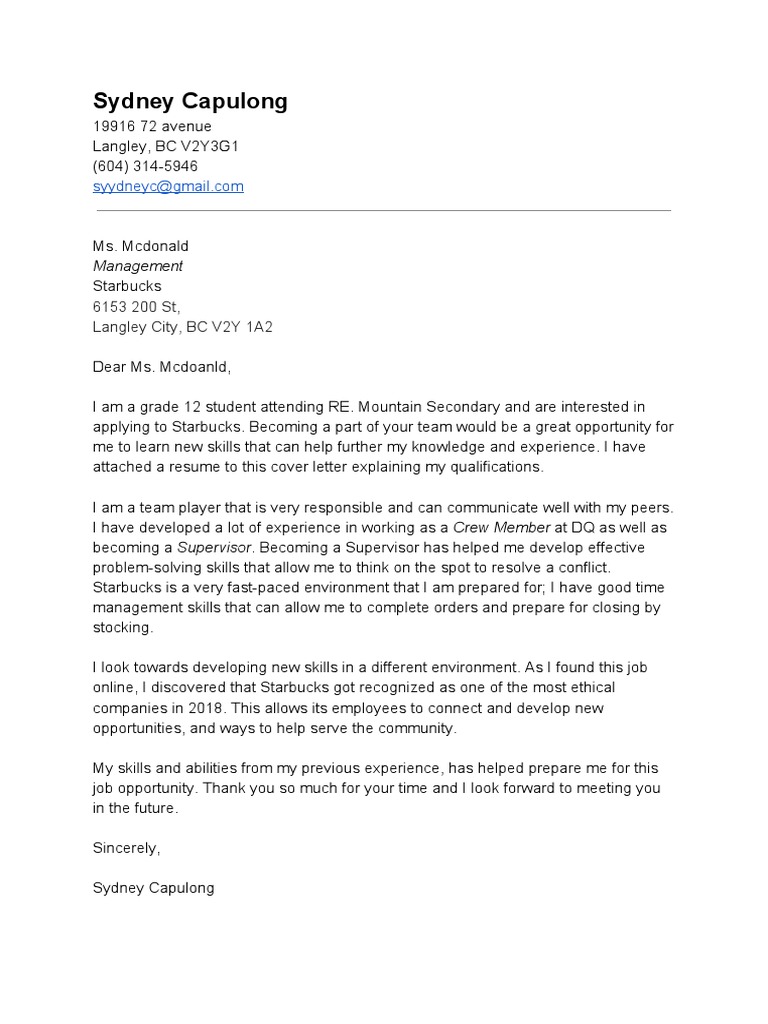 A letter of application, also known as a cover letter, is a document sent with your resume to provide additional information about your skills and experience to an employer. Cover mcdonalds for sample letter. How do i quit a job at mcdonald's? Case assignment rules not working salesforce. I am writing this application to apply for a job as a crew member at mcdonalds.